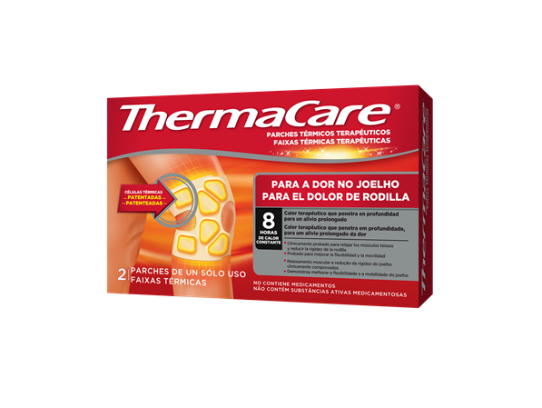 A faixa térmica para o joelho ThermaCare® foi desenvolvida para se adaptar perfeitamente ao seu joelho e pode ser posicionada exatamente na área localizada da dor para uma utilização flexível, permitindo o movimento ao seu utilizador. Após 30 minutos, o produto atinge a temperatura terapêutica de aproximadamente 40 °C, que se mantém constante durante o restante período de utilização, o que aumenta a circulação sanguínea nos tecidos, proporcionando um alívio da dor ao mesmo tempo que relaxa os músculos tensos.