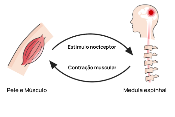 Quando o corpo sofre uma lesão, os recetores de dor transmitem mensagens de dor através da medula espinhal para o cérebro, que, por sua vez, emite uma resposta perante a ameaça.