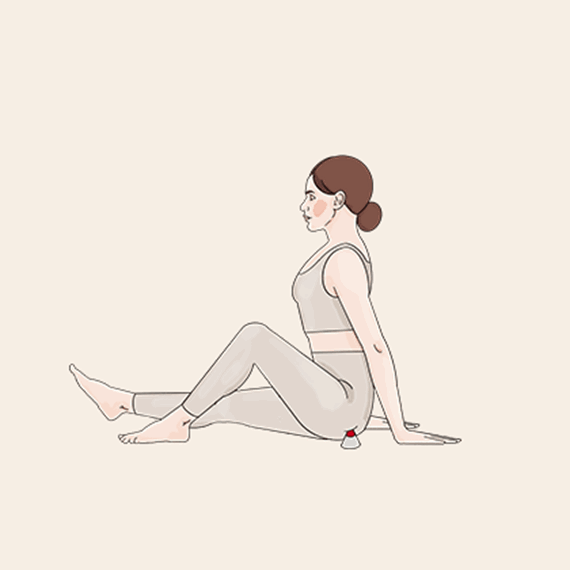 Passo 1: Posicione o massajador ou outro objeto no ponto exato das nádegas onde existe dor ao caminhar ou ao levantar a perna e sente-se suavemente sobre esse ponto. Se a zona estiver demasiado sensível, pode também fazer o exercício contra a parede e encostar-se ao massajador/objeto mantendo-se de pé. Mantenha-se nesta posição durante até dois minutos. Quando a dor diminuir, pode mudar de posição ligeiramente para trabalhar numa zona mais ampla em torno desse ponto.